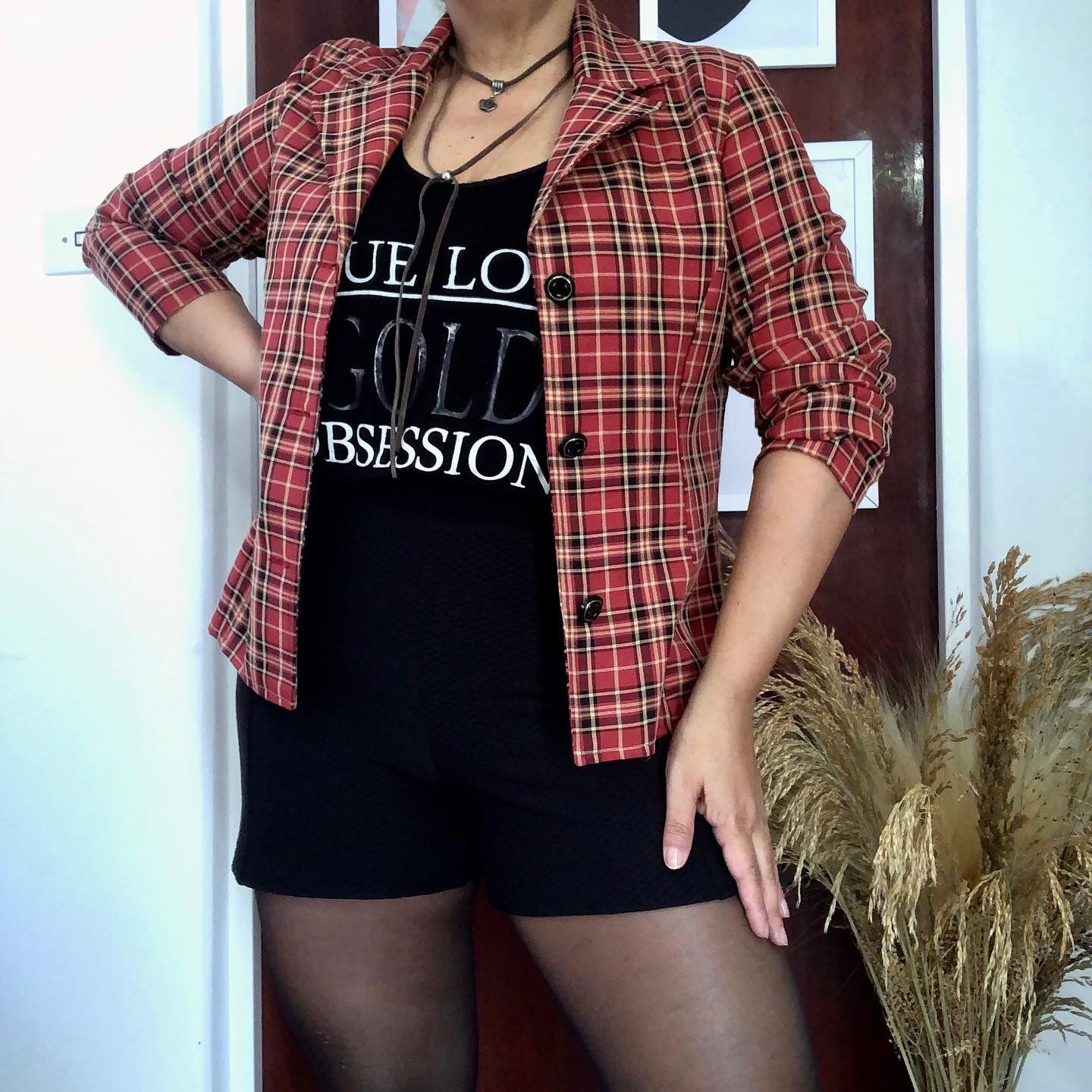 🌷Blazer Xadrez Laranja em tecido poliéster com botões . Blazer tem forro.