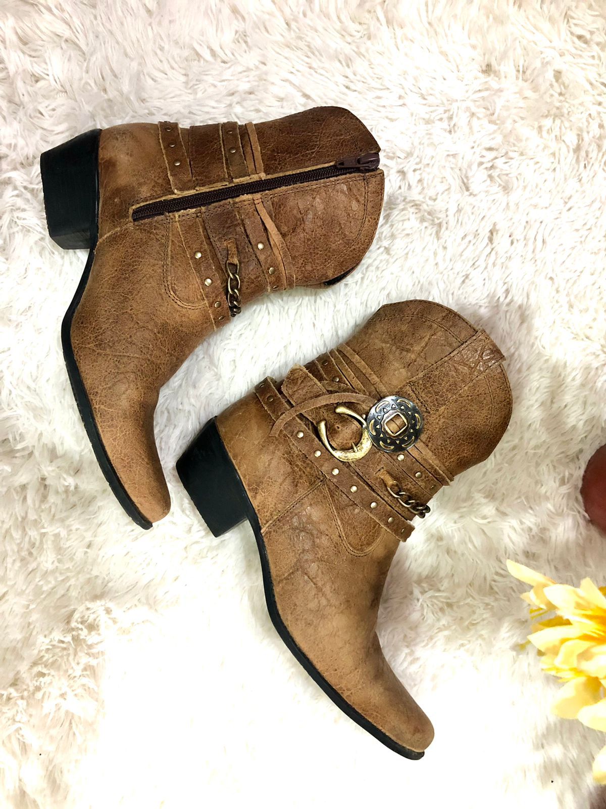 Linda bota em couro legítimo, está simplesmente fantástica. Sem detalhes, usada pouquíssimas vezes. super estilosa e atemporal, nunca sai de moda. sabe aquela bota que você vai ter para a vida toda, sem desgaste. invista em materiais de couro legítimo. as vezes você pode pensar que o valor é alto, mas pelo tempo que ela dura é um super custo benefício.
