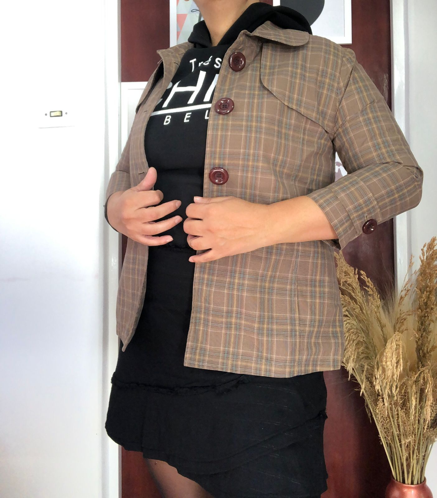 🌷Casaco Xadrez em tecido algodão da marca Marisa, manga 3/4, interior forrado.