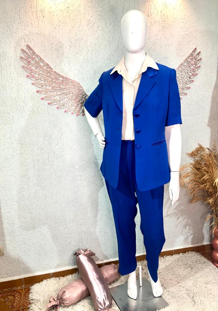 🌷Lindo conjunto de terninho na cor Azul Bic, simplesmente impecável em todos os detalhes, botões forrados, peça estruturada, de alta costura. Blazer Forrado, mangas curtas.
