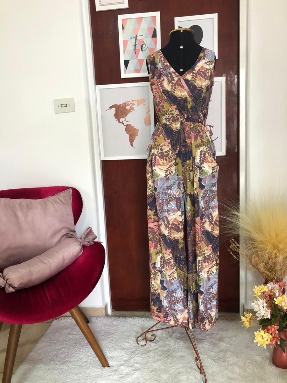 Lindo macacão florido de malha, tamnho G, veste manequim 42.