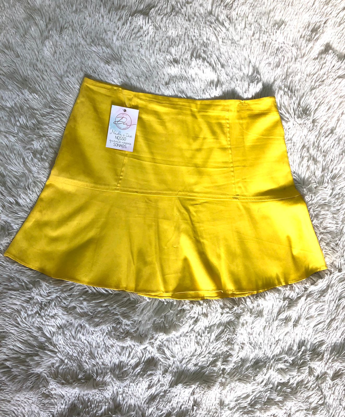 Linda saia na cor amarelo, tamanho 42, em sarja.