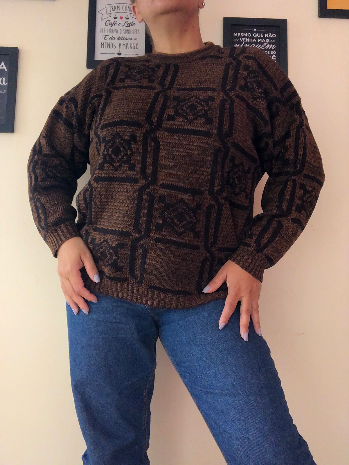 lindo suéter vintage com cgc, está impecável de lindo, muito quentinho e super estiloso, esperando por você que gosta de peças estilosas e vintage.